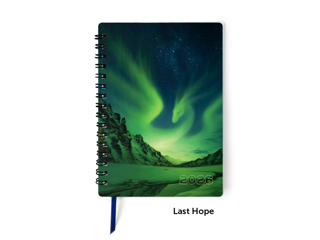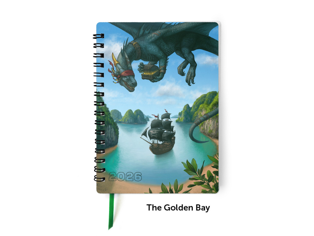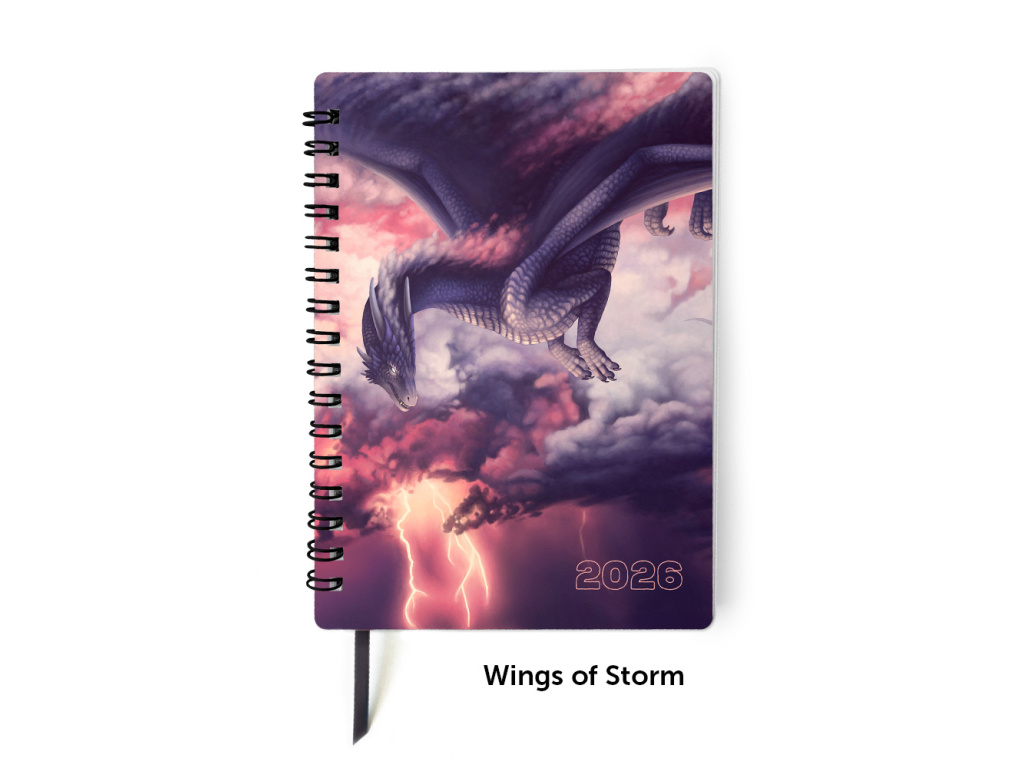 Praktický dračí diář na rok 2026 pro ty, kteří si stejně jako já stále rádi píší poznámky ručně. Diář je kompletně v češtině a bude mít Vámi vybranou ilustraci na přední straně obálky (stačí si prohlédnout galerii produktu). Má formát A6 (105×148 mm) se zakulacenými rohy pro větší odolnost, černou kroužkovou vazbu a záložkovou stuhu. Obálka je chráněná lesklým laminem a poslední stranu tvoří pevný karton.