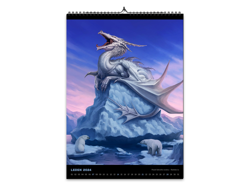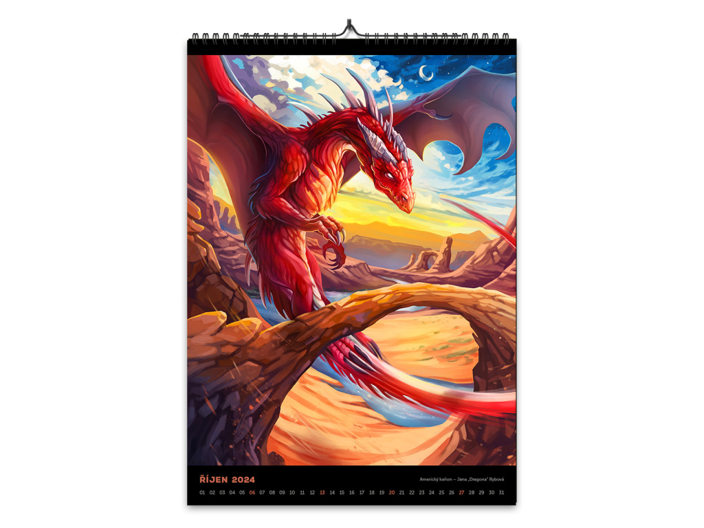 Dračí kalendář: DRACI 2024 je sborníkem fantasy ilustrací s draky od 13 autorů z České republiky a Slovenska. Do našeho projektu se může přidat kdokoli, kdo umí malovat a má rád fantasy. Ze všech přihlášených děl pak společným hlasováním vybíráme ta nejpovedenější pro publikování v kalendáři. Letošním tématem jsou „Draci v přírodních krajinách“, a tak zde najdete řadu rozličných scenérií se svými dračími obyvateli. Pokud si některé ilustrace opravdu oblíbíte, mohou vám dělat radost ještě dlouho – vystřižením podél černých okrajů si jednoduše vyrobíte až 13 krásných dračích obrázků o velikosti 297 × 370 mm, které si můžete třeba i zarámovat.