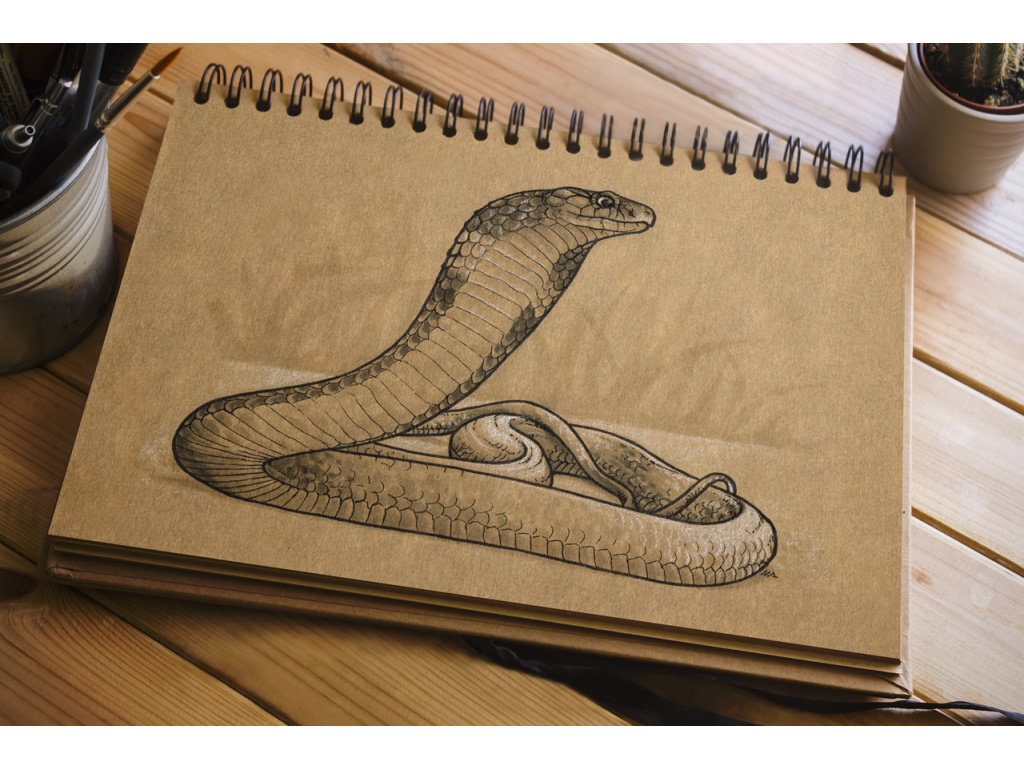 - Kresleno na hnědý, recyklovaný papír velikosti 147 x 210 mm pomocí tuše, Copic markerů a bílé pastelky.